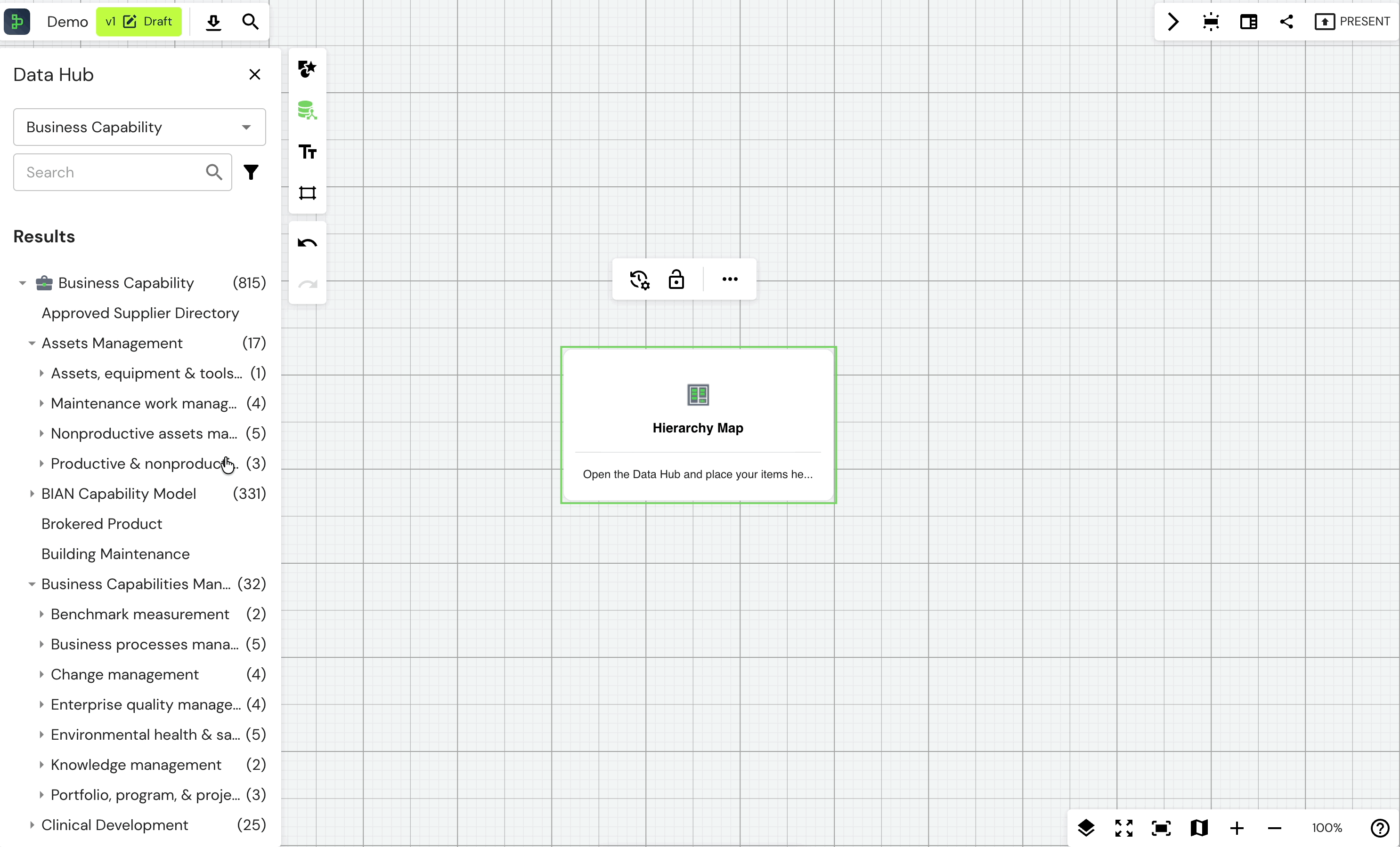 - Filters are now independent from Data Hub filters, allowing each instance of the Hierarchy Map to maintain its own filters.